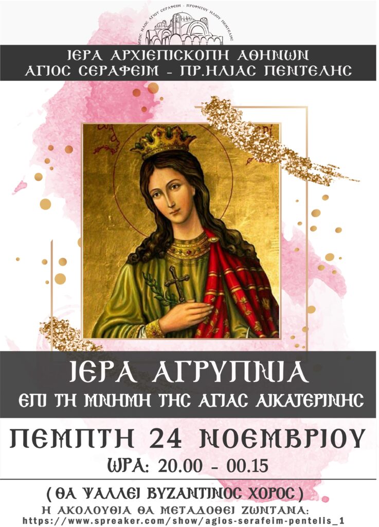 Νοέ212022Ανακοινώσεις Category: ΑνακοινώσειςBy Stella21 Νοεμβρίου, 2022 Author: Stella Post navigationPreviousPrevious post:Ιερά Αγρυπνία επι τη μνήμη του Μεγαλομάρτυρος Δημητρίου του ΜυροβλήτουNextNext post:Ιερά Αγρυπνία επί τη μνήμη του Αγίου Πορφυρίου ΚαυσοκαλυβίτουRelated PostsΙερά Αγρυπνία Επί Τη Εορτή Του Αγίου Χαραλάμπους30 Ιανουαρίου, 2024Αγιασμός Έναρξης Κατηχητικών Σχολείων4 Σεπτεμβρίου, 2023Ιερά Πανήγυρις Προφήτου Ηλιού Πεντέλης24 Ιουλίου, 2023Ιερά Αγρυπνία Επί Τη Εορτή Του Οσίου Θεοφόρου Πατρός Παϊσίου Του Αγιορείτου10 Ιουλίου, 2023Παράκληση Για Τους Διαγωνιζομένους Μαθητές Και Υποψήφιους Φοιτητές17 Μαΐου, 2023Χριστουγεννιάτικη Εορτή Κατηχητικών σχολείων Αγίου Σεραφείμ Πεντέλης12 Δεκεμβρίου, 2022